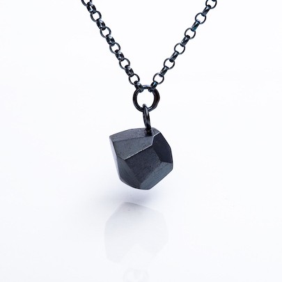 The solid sterling silver Facet Black Apple uses irregular design lines played out over a contrasting, monochromatic palette using angular and faceted nugget shaped clusters of specular solid sterling silver. Geometric interlocking, nature inspired and referencing opulence with romance. Delicate design touches contrast bold pieces with a presence to behold.
