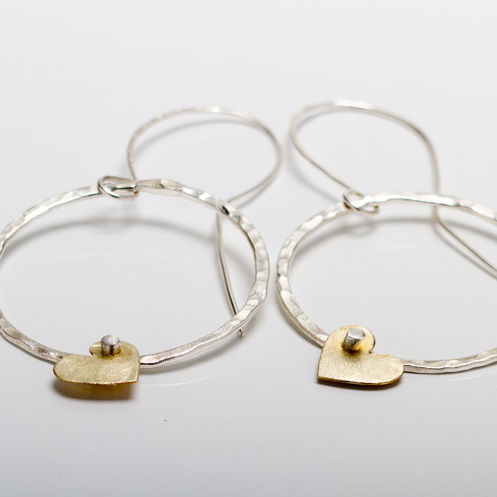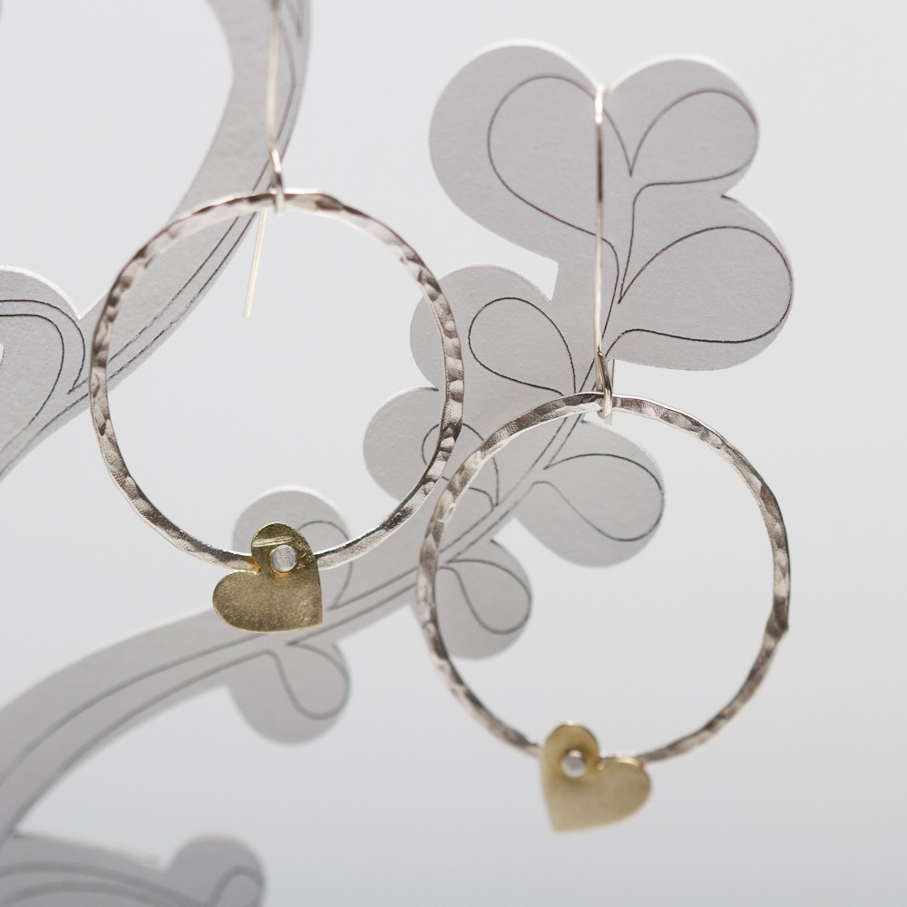 Pretty and delicate loop earrings with the detailed choice of a precious metal hearts x