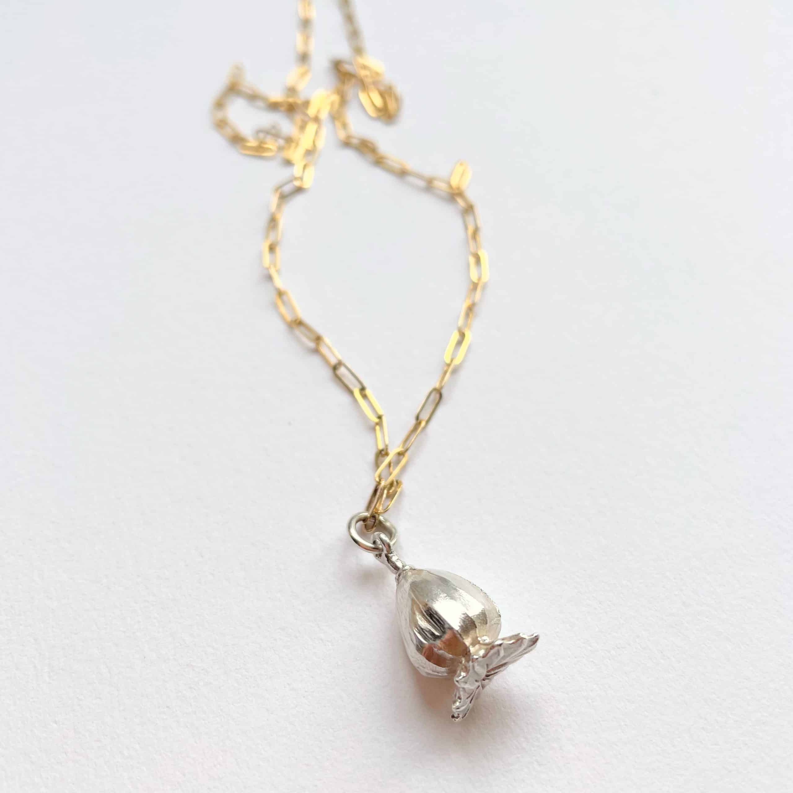 Cloversoul Scatter Seed Necklace is beautifully detailed poppy head. Attached is a beautifull paperclip gold filled chain. We love a silver and gold combo at Cloversoul.