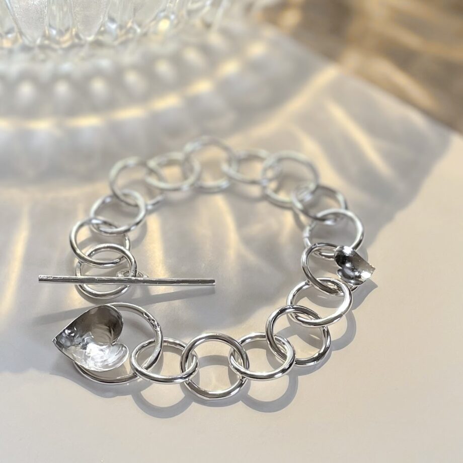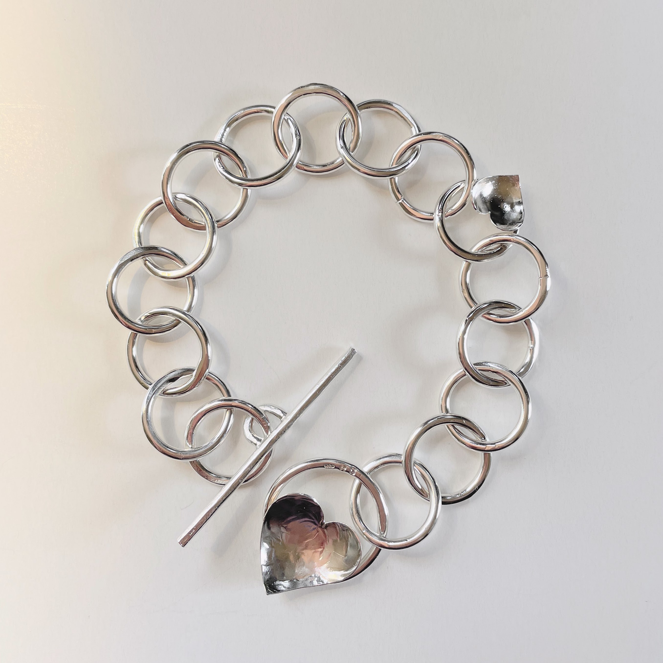 Solo heart bracelet is a chunky handmade statement piece to wear on your wrist. Each link is handmade by yours truly and finely polished with the Solo heart as the centre piece x